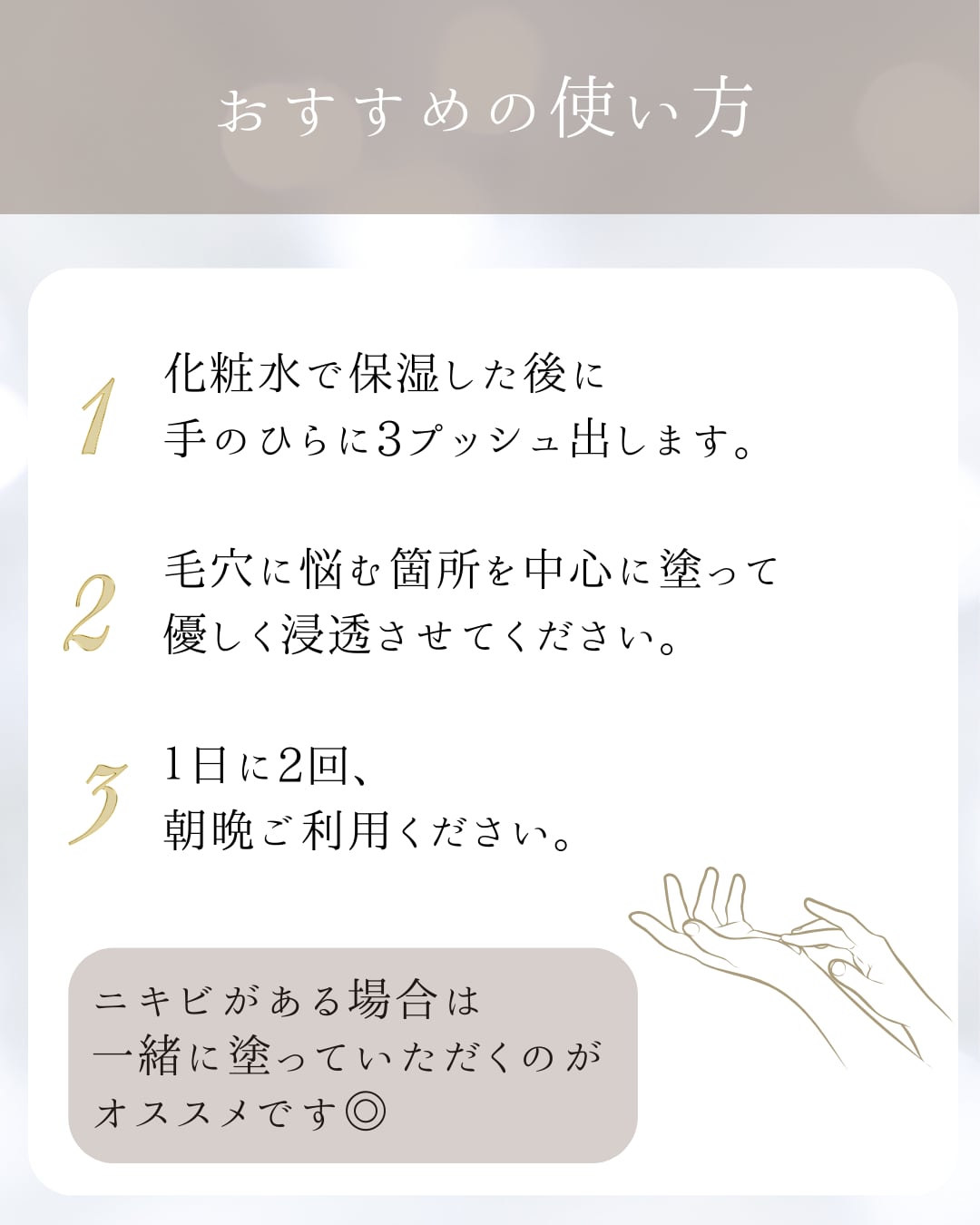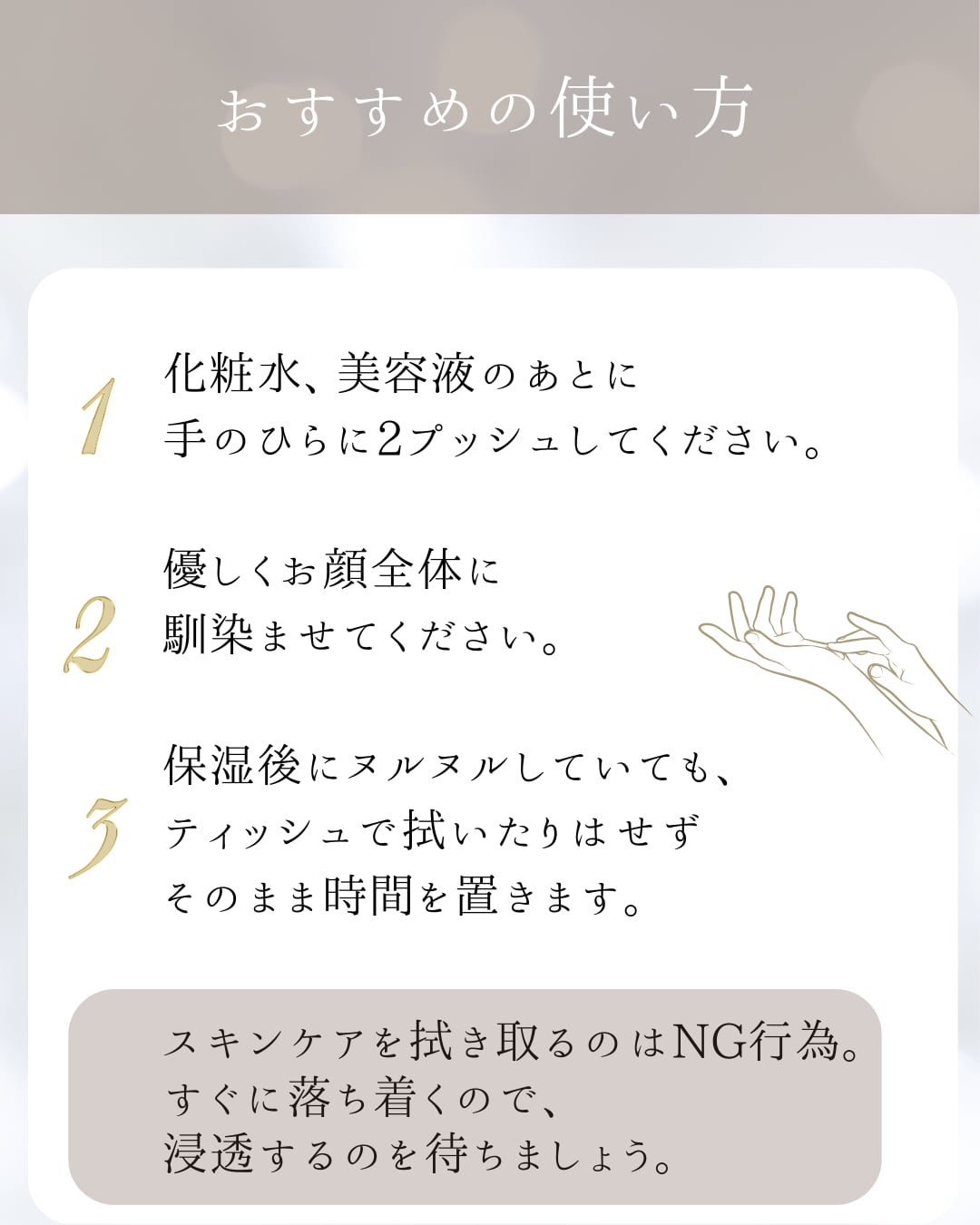 人気のヒト幹細胞培養エキスもたっぷり入っているので、高保湿で潤いのあるお肌に導きます。